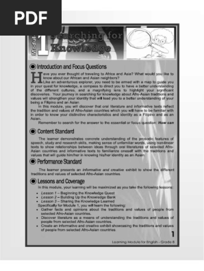 Filipino 8 SumTest Q1 Modules 1-4. The six lessons found in this module were split into self-contained units with their own activities and notes for further reading. This empowers people to learn from each other and to better understand the world.
